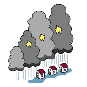 同じ場所に湿った空気が長時間流れ続け雨が降り続けるので雨量がキャパを超えて災害が起こりやすいです。