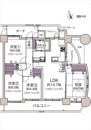 | 間取内容 | LDK14.7畳1室洋室6畳1室洋室6畳1室和室6畳1室洋室4.4畳1室 |