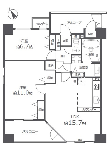 | 間取内容 | LDK15.7畳1室洋室11.0畳1室洋室6.7畳1室 |