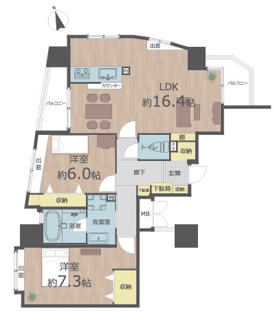 間取内容 LDK16.4畳1室洋室7.3畳1室洋室6.0畳1室